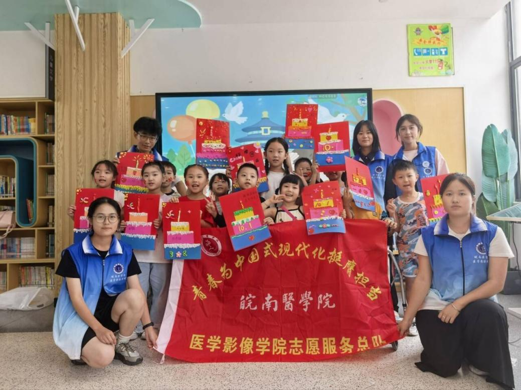 此次活动不仅为小朋友们带来了一场生动的爱国主义教育,用自身行动来表达爱国之情,同时也为学院志愿者积累了一次宝贵的实践经验,在服务与奉献中体悟青年担当,增强国家认同感。未来,医学影像学院将持续开展此类活动,以实际行动回馈社会,展现影像学子的良好风貌。(陶然、刘梦晗、张昱昊/文 陶然/摄)