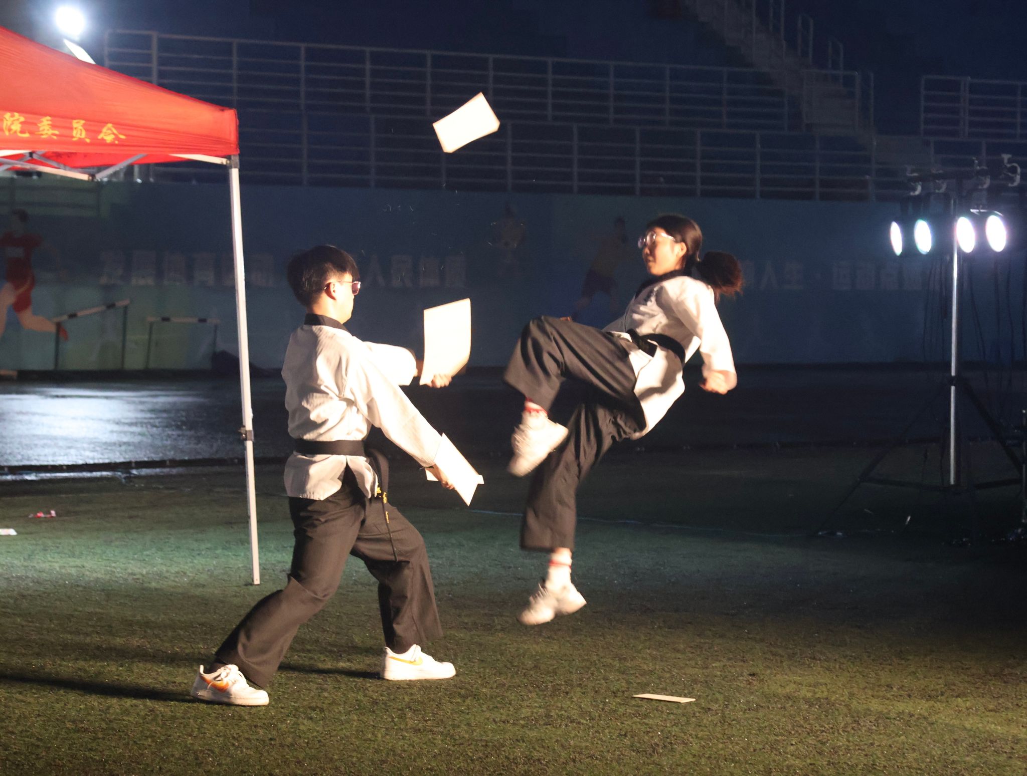 傍晚18点30分夜幕降临,社团文化艺术节晚会准时开启。中西音乐文化社以《我的未来式》《静止》两首歌曲带领同学们走进音乐的海洋,青春旋律瞬间点燃晚会氛围;演讲与口才协会的朗诵《青春的交响》用铿锵语言勾勒理想蓝图,引发新生共鸣;大学生艺术团的合唱《霸王别姬》荡气回肠,重现千古英雄豪情;舞次方社团接连带来《古舞流芳·疆韵飞扬》《Style》《Girls Will Be Girls》《舞蹈串烧》节目,精彩的舞蹈演出从古典西域风情到现代潮流节奏,展现舞蹈多元魅力,台下掌声频频;盒子动漫社的《这么可爱真是抱歉》表现元气满满,展现青春气息;魔术协会《奇迹时刻》邀观众上台互动,妙趣横生的魔术手法赢得阵阵惊呼;大学生艺术团表演队带来的小品《你好,老师》以校园故事引发新生对未来大学生涯的规划和思考;军事爱好者协会《砺刃》表演者为我校退役大学生,他们的战术摔擒表演刚劲有力,尽显皖医青年热血风采;英语角协会《Take Me To Your Heart》用温柔歌声打动人心;盒子动漫社的梦幻光影秀《影色舞》则用光影交织打造沉浸式视觉盛宴;红十字协会《以青春践行公益路,用奉献致敬生命歌》朗诵传递志愿精神;中西音乐文化社的歌曲《落叶归根》娓娓道来,为细雨中驻足观看的观众带来了温暖和力量;晚会最后在跆拳道协会《“跆”启未来》展现速度与力量的碰撞中落下帷幕。