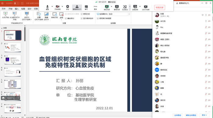 为浓厚学术氛围,进一步拓展师生学术视野,促进学科交叉,12月1日下午,科研处联合基础医学院邀请孙丽博士作题为“血管组织树突状细胞的区域免疫特性及其致炎机制”的学术讲座,会议以线上方式举行。