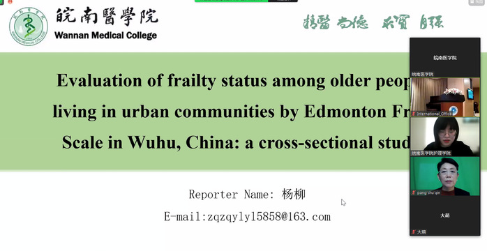 为进一步开阔师生国际视野,促进两岸高校教师学术交流,增进兄弟院校友谊,应台湾元培医事科技大学邀请,3月25日下午,我校组织滨江、赭麓校区护理学院师生及弋矶山医院护理员工共20余人,参加由元培医事科技大学举办的首届华人教师线上交流会,护理学院教师杨柳应邀作主旨报告。