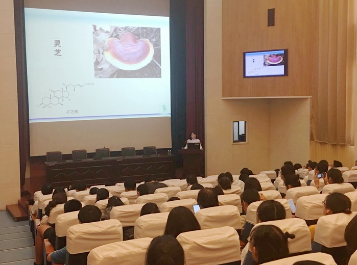 王存琴博士从常见的抗肿瘤天然药物入题,概括介绍了三萜类化合物的结构特点、抗乳腺癌作用机制及构效关系,并结合自己的研究工作,详细介绍了大叶冬青叶中三萜类化合物的分离、鉴定、抗乳腺癌作用机制及构效关系。报告层层深入,思路缜密,语言朴实,通俗易懂,参会师生获益良多。