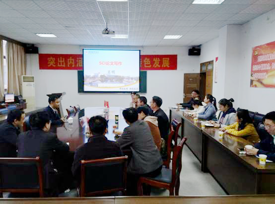 肖明教授首先介绍了SCI论文的常见类型,把SCI论文分为16个基本结构,深入浅出的讲解每个部分要点和注意事项,同时结合自己的经验分享了SCI论文投稿步骤及心得体会。随后,与会人员就学科建设、青年教师培养、研究方向凝练、团队组建、进修访学和课题申报等方面进行了深入而热烈的交流和讨论。近2个小时的报告会时间紧凑,内容细致而具体。本次交流会不仅为大家介绍了SCI论文写作技巧,也为促进合作提供了良好交流平台。